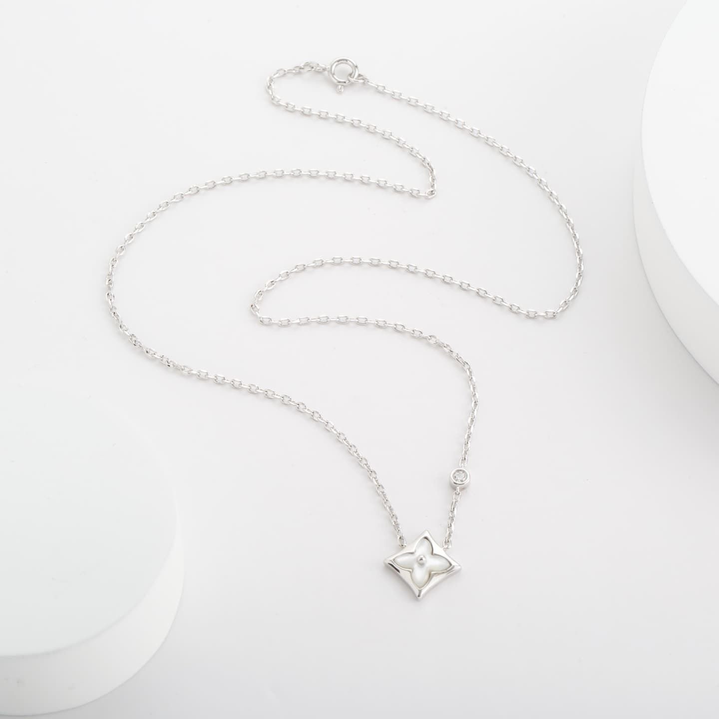 | Description | Single flower diamond-shaped necklace with diamonds, classic diamond design, good gloss, small chain diamonds are exquisite, elegant and versatile |